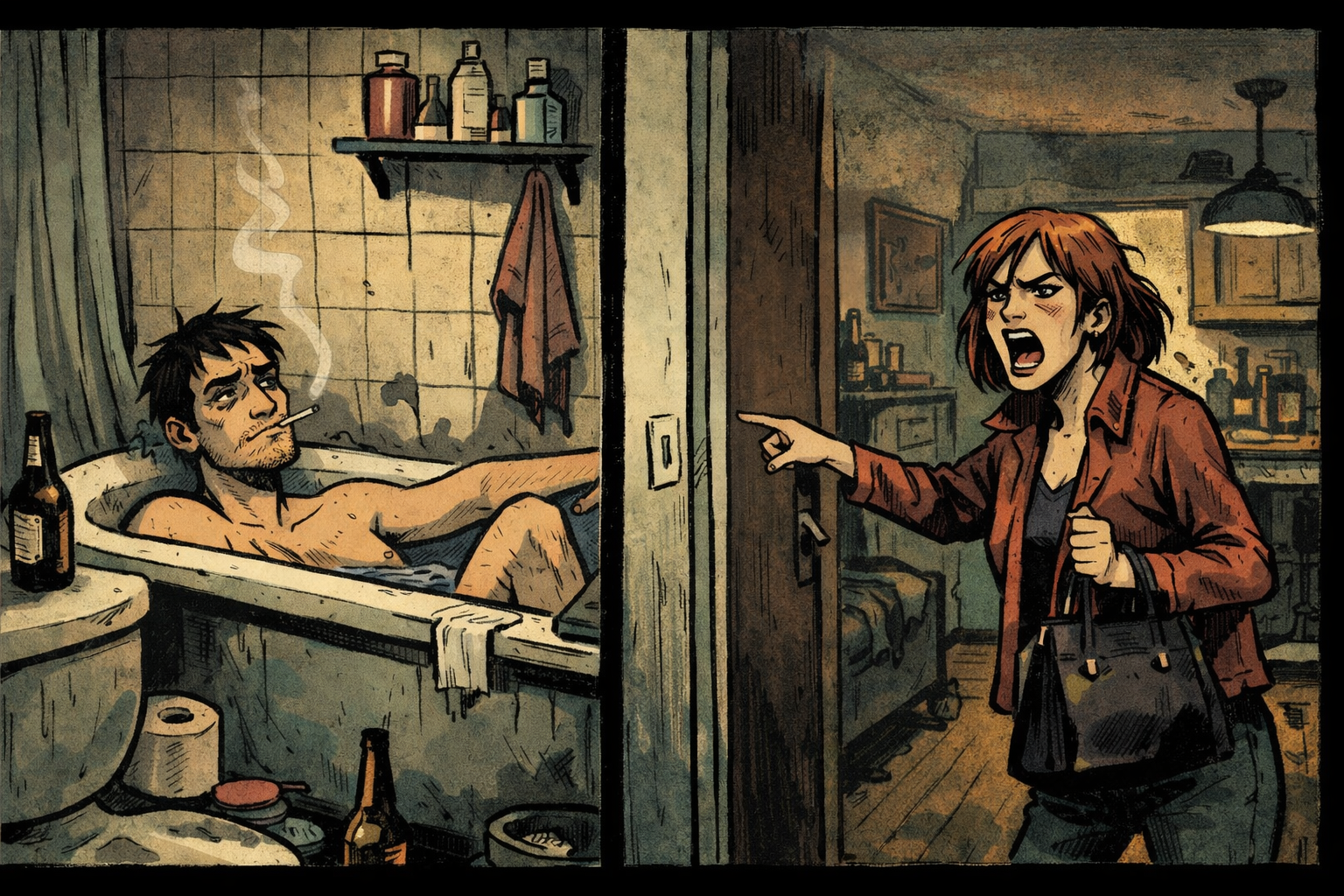 »Ich dusche gar nicht«, ruft er aus dem Badezimmer. Pause. »Mein Schatz.« Ich frage lieber nicht, was er stattdessen macht. Holt sich wahrscheinlich wieder in der Badewanne einen runter und denkt, ich bekomme davon nichts mit. Das Arschloch ist so dämlich. Wie soll ich davon nichts mitbekommen, wenn er das Resultat seiner Mühen quasi im ganzen Bad verteilt? Mich rührt er ja nicht mehr an. Ist auch besser so. Seit das Schwein nicht mehr regelmäßig duscht, ist mir jegliche Lust vergangen.